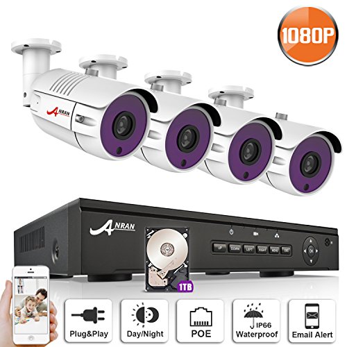 - 【Expandable Video Security System】8ch POE NVR & 4x 1080p ip poe cameras, IP66 Waterproof, you can use both indoor and outdoor. 3.6mm lens give you 75 degree viewing abgle, the 36 pcs infra-lights provide 65ft night vision. With IR-CUT the camera will switch from day to night automatically, you will get a clear white and black image at night, and the real colour at day time. Suppport up to 8pcs cameras, Only compatible with Anran & Swinway 1080p ip camera. If need, please search B073ST1ZR7.