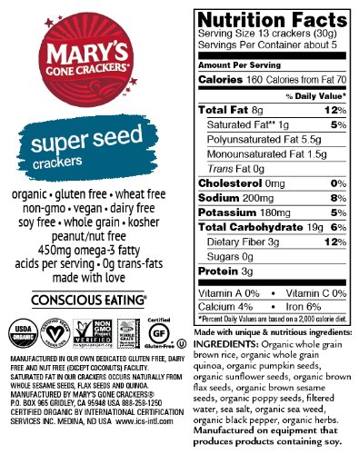 -. Title : Mary's Gone Crackers Original Super Seed Crackers, 5.5 Ounce