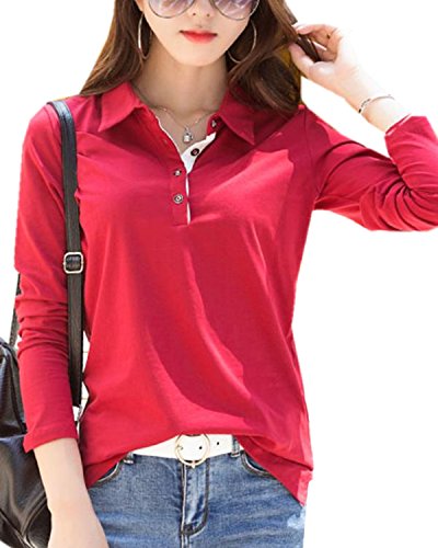 -. Title : ININUK  ポロシャツ レディース 長袖  Tシャツ 春秋 コットン 純色 柔らかい トップス カットソー ストレッチ 折り襟 スリム 着痩せ 作業服 事務服 オフィス制服 通勤 スポーツウェア ゴルフウェア おしゃれ