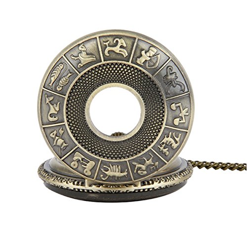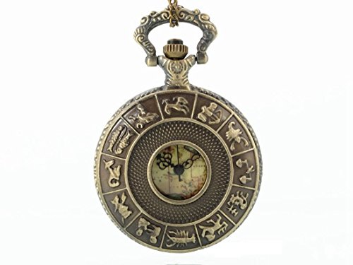 -. Title : WZC Vintage Twelve Constellation Quartz Pocket Watch with gift box