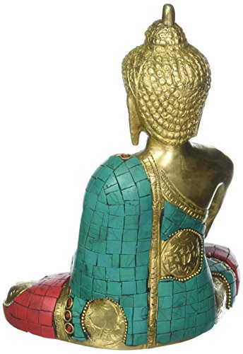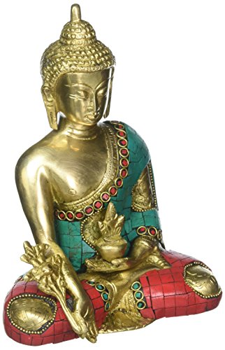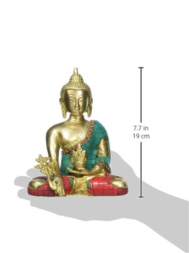 Large Turquoise Coral Medicine Buddha Statue, Tibetan Buddha Statue, Sitting Brass Statue