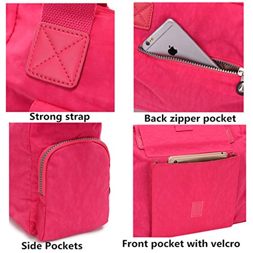 - Multi Pockets Design-Keep your belongings safe and everything organized.Exterior:1 front velcro pocket ,1 rear zip pocket and 2 side zip pockets.Interior:Main compartment with a middle divider,2 slip pockets and 1 secret zip pocket.