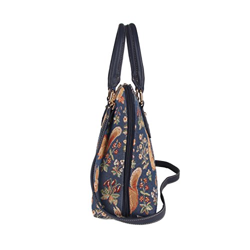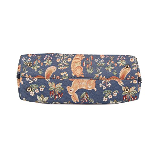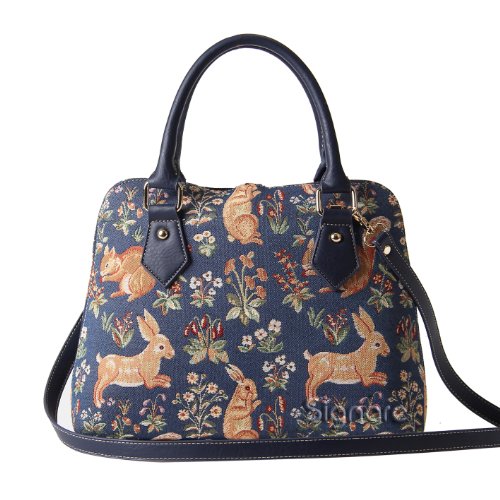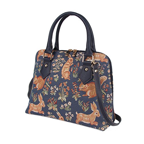 Blue Ladies Fashion Canvas Tapestry Top Handle Handbag with Detachable Strap to Convert to Shoulder Bag by Signare with Rabbit and Squirrel Pattern (CONV-FORE)