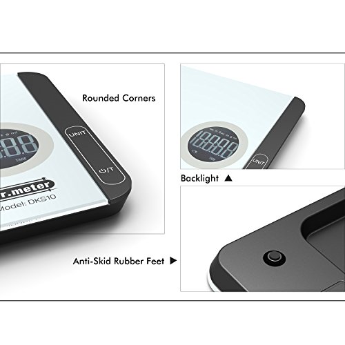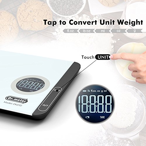 Dr.meter Touch Kitchen Food Scale,High-precision,Easy to Clean Tempered Glass Surface,11lb/5kg,DKS10
