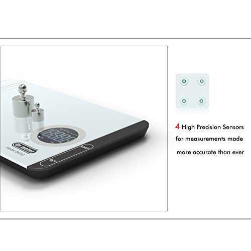 Highly Accurate: The 4 high precision sensors enable accurate readings no matter where you place item on the scale surface. Accurancy of 1g/1ml