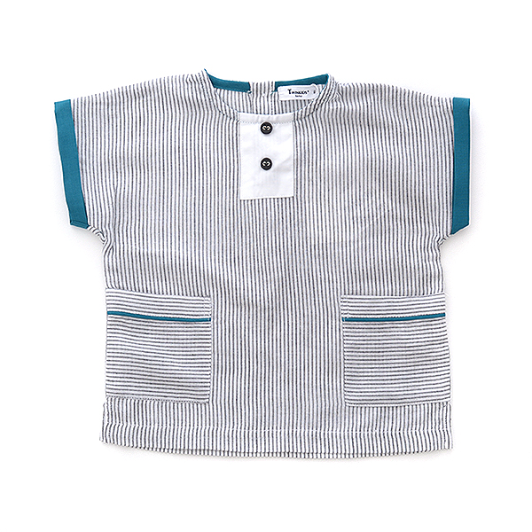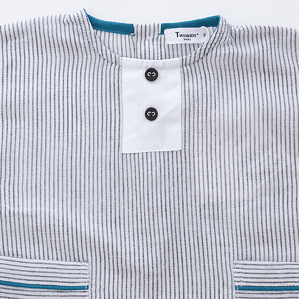 상세설명 : ※모니터 해상도, 밝기, 컴퓨터 사양 등에 따라 실물과 약간의 색상차이가 있을 수 있습니다. 오버핏의 핀스트라이프 티셔츠로 그린컬러로 파이핑,롤업배색을 주어 포인트를 주었습니다