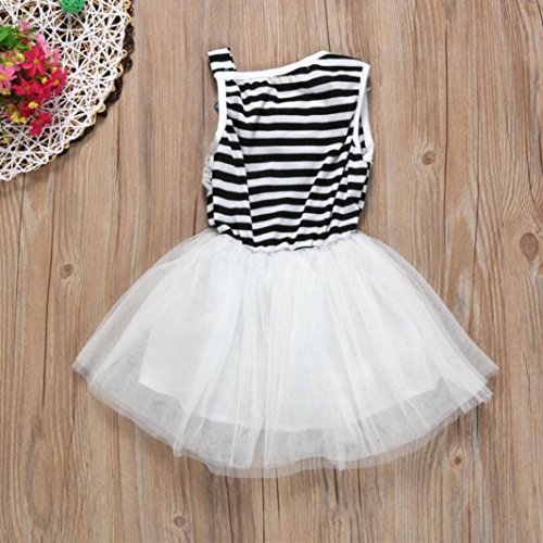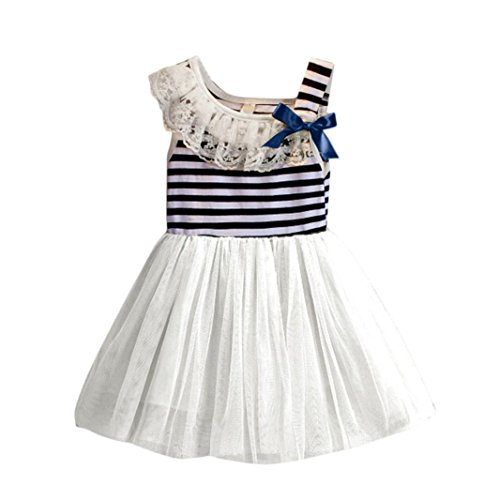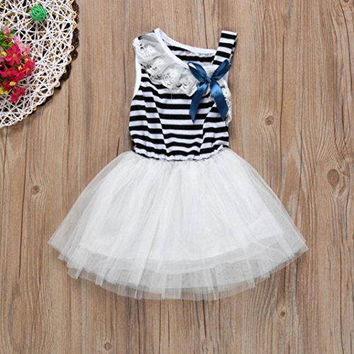 ?: Description: ?: ?: Gender:Girls ?: Clothing Length:Regular ?: Pattern Type:Striped ?: Decoration: Bowknot Lace ?: Style:Cute ?: Material:Cotton Blended Yarn ?: Collar:O-Collar ?: Sleeve Length:Sleeveless ?: Package include:1PC?Dress ?: ?: Size Details: ?: ?: Size:1T===Label Size:80===Bust:50CM/19.7"===Length:48CM/18.9"===Height:80CM ?: Size:2T===Label Size:90===Bust:52CM/20.5"===Length:50CM/19.7"===Height:90CM ?: Size:3T===Label Size:100==Bust:54CM/21.3"===Length:52CM/20.5"===Height:100CM ?: Size:4T===Label Size:110==Bust:56CM/22"====Length:54CM/21.3"====Height:110CM 0
