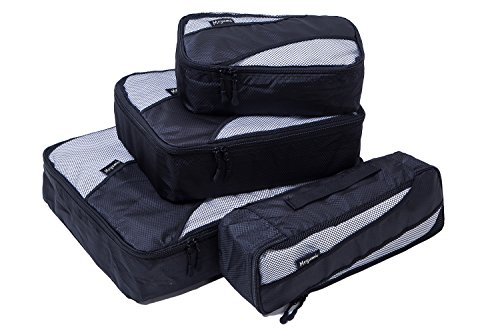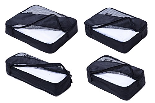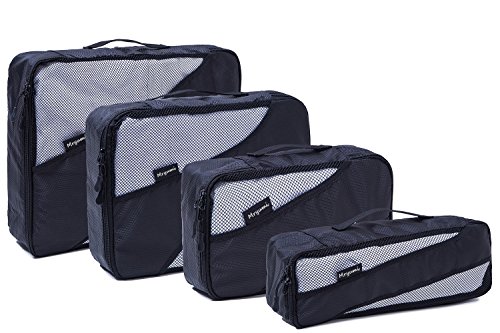 • 4 Packing Cubes - 1 large (17.3 x 13.4 x 3.9 inches), medium (13.4 x 9.4 x 3.1 inches), small (11.4 x 7.1 x 3.1 inches), and slim (14.6 x 5.5 x 3.1 inches) Mryumi packing cube.