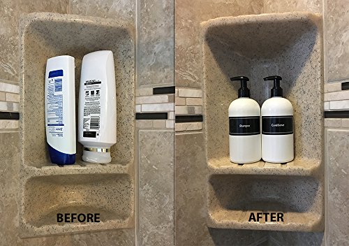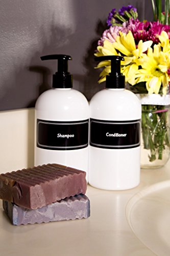 - DESIGNER LOOK - We designed these labels and bottles to look very STREAMLINED, ORGANIZED and UPSCALE. It's the minimalist approach to shampoo and conditioner, without all the effort and hassle of DIY. Finally, you can impress your guests and feel more relaxed in your own bathroom without all the distracting bottles on display. And your guests will never know if you buy cheap shampoo for the guest bathroom! We won't tell them and neither will our bottles!