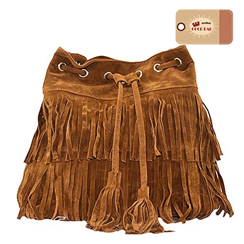 Goodbag Boutique Fashion Tassel Shoulder Bag Synthetic Leather Drawstring Bucket Bag Crossbody Bag Handbag for Woman and Teen Girls