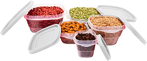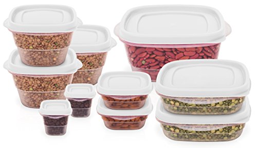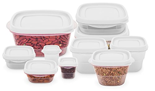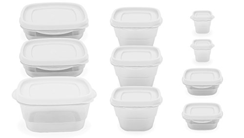 20 Pc Reusable Plastic Food Storage Containers - Lunch Boxes w/ Air Tight Lids (White)