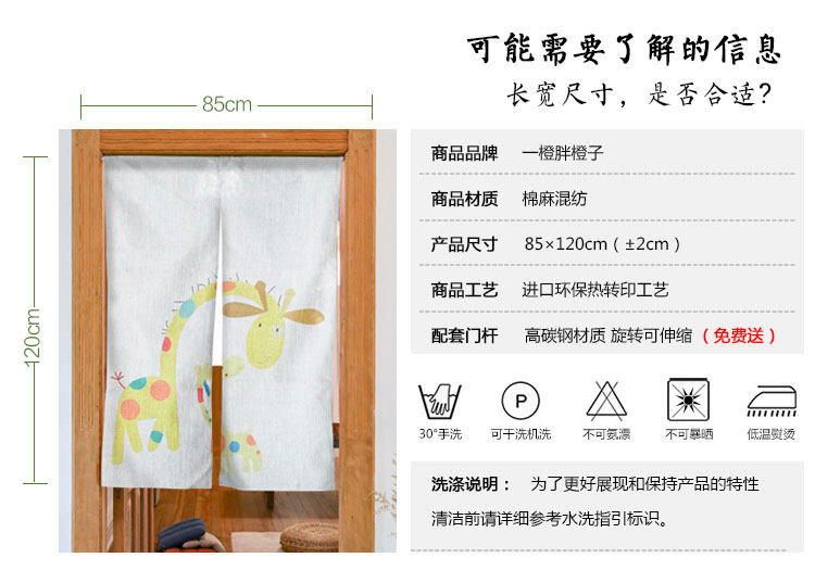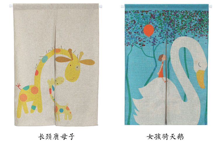 卡通可爱棉麻门帘儿童房布艺半帘隔断帘子厨房卧室卫生间布帘挂帘