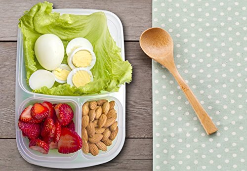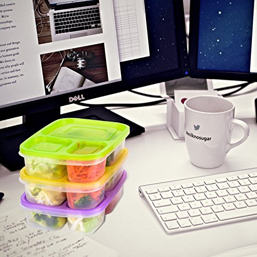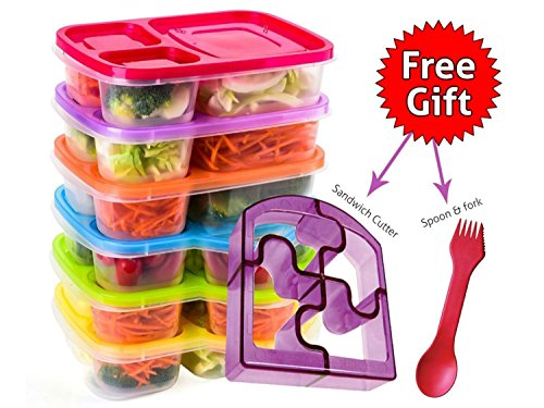 Bento Lunch Box Food Containers – Set of 6 Premium Lunch Boxes– Ideal for Adults, Kids, Girls and Boys – 3 Compartment Japanese Style Lunch Boxes – Free 2-in-1 Fork/Spoon & Puzzle Sandwich Cutter