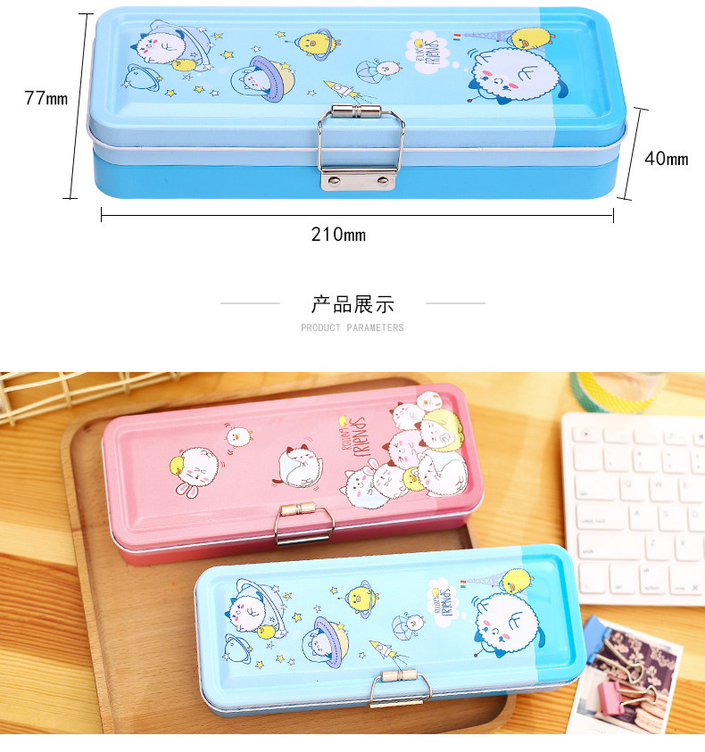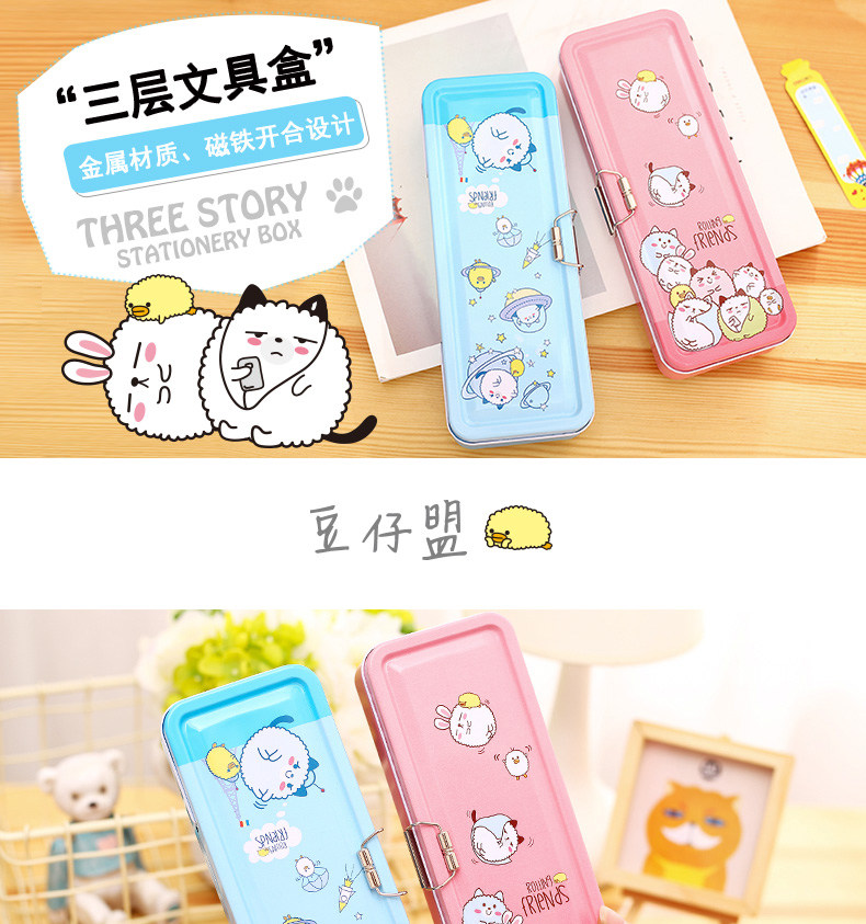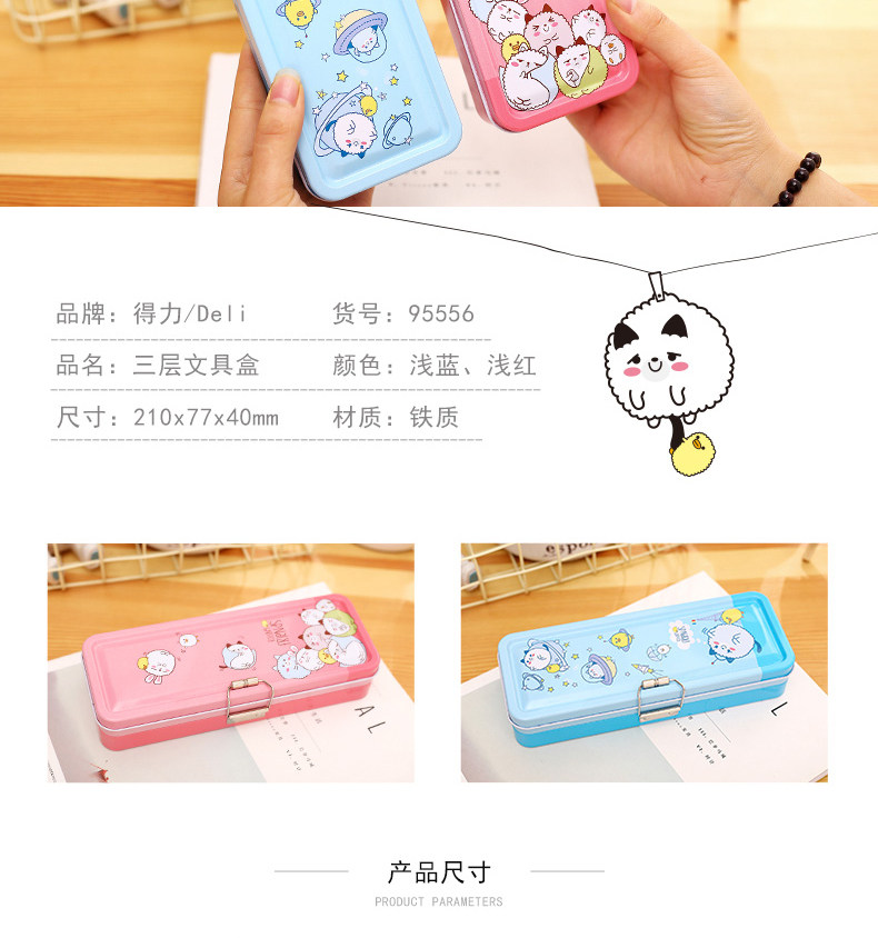 得力卡通文具盒 铁质三层铅笔盒 小学生儿童男女孩多功能笔盒铁盒