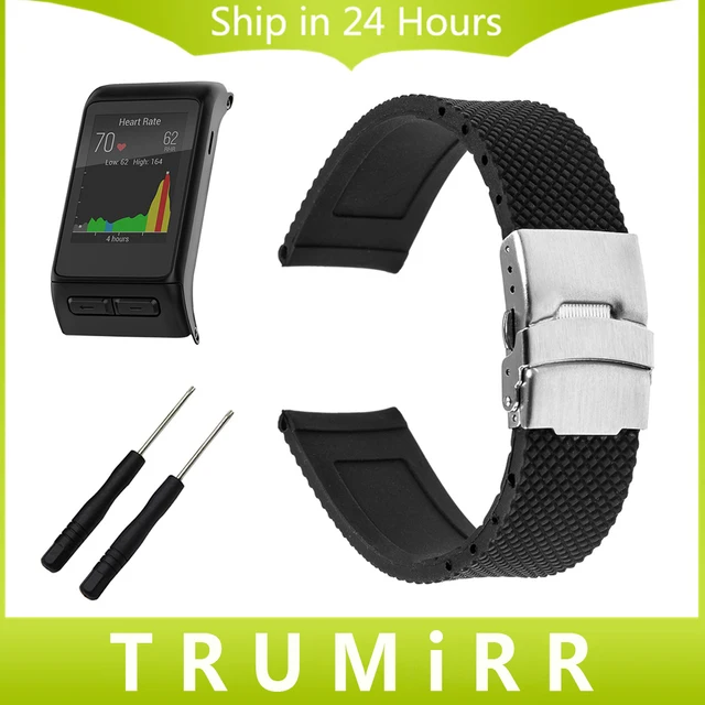 | [해외] 24 미리메터 실리콘 고무 손목 시계 + 도구 garmin vivoactive hr GPS 스포츠 시계 밴드 안전 버클 스트랩 손목 벨트 팔찌 블랙 |