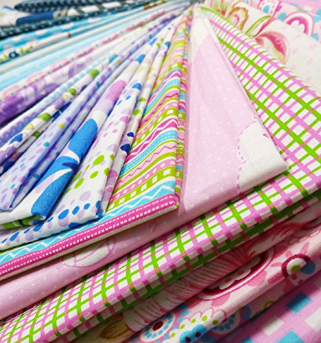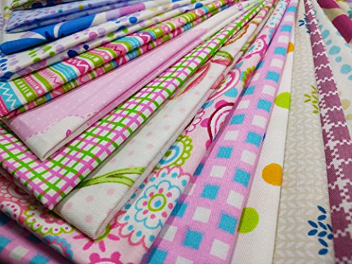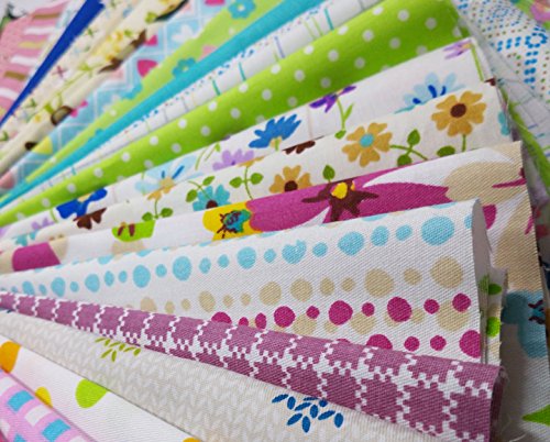 levylisa Pre Cut Assorted Cotton Printed Fabric Patchwork Fabric Fat Quarter Bundle patchwork Quilting Fabric Sets Sewing Fabric Patchwork Flower Dots DIY quilting Handmade Craft 11.8” x 11.8”
