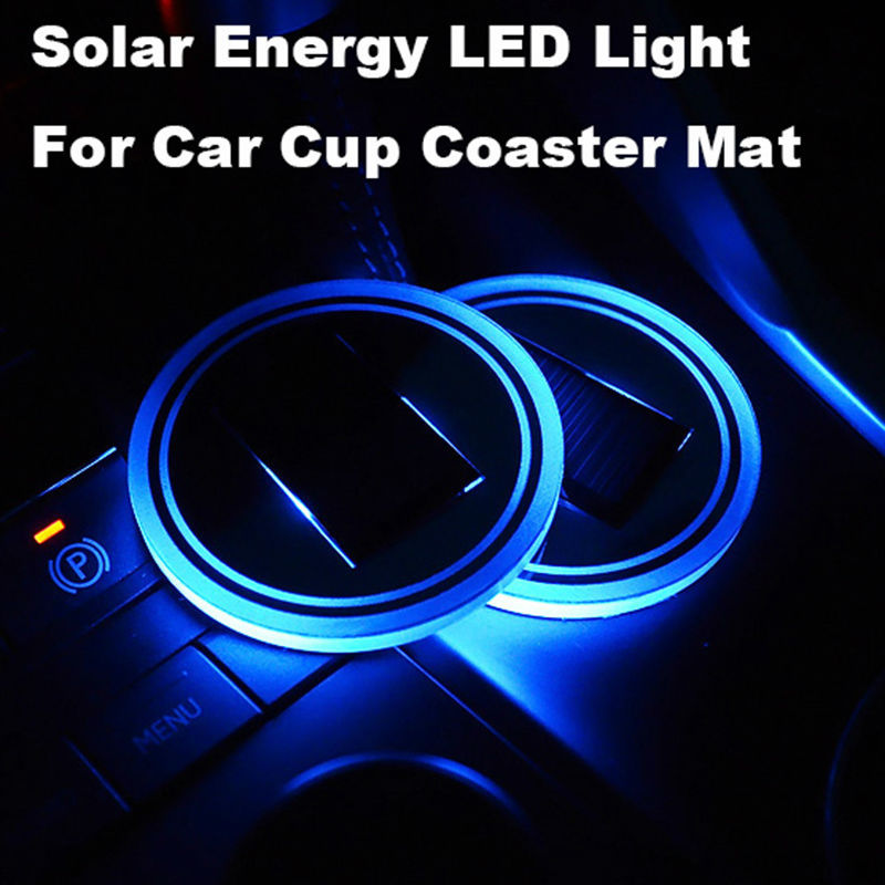 Solar Energy Cup Holder Bottom Pad LED Light Cover Trim For All cars All models