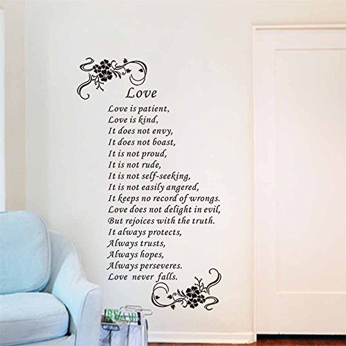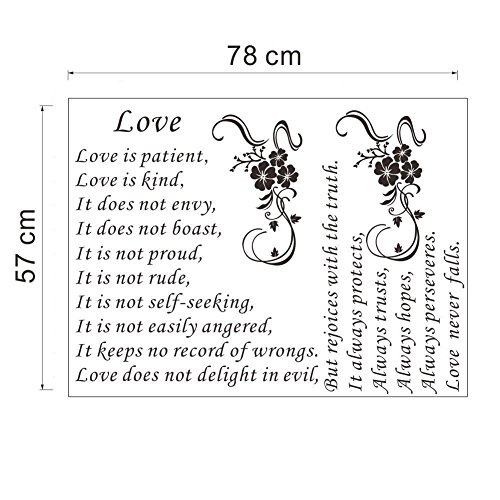 -. Title : ufengke Romantic Love "LOVE IS PATIENT, LOVE IS KIND" Quotes and Sayings Wall Decals, Living Room Bedroom Removable Wall Stickers Murals