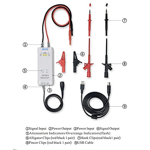 Micsig DP10013 High Voltage Differential Probe 1300V 100MHz 3.5ns Rise Time 50X/500X Attenuation, Tektronix P5200A P5205A P5210A