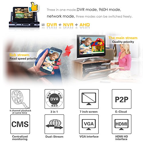 Full D1 4 Channel DVR with 7 Inch Monitor features H.264 Video Compression, D1 Resolution Record and Playback as well as having HDMI Output and Support Phone Viewing is considered a true all in one security solution;