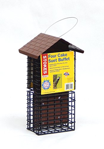 Stokes Select Four Cake Suet Buffet Bird Feeder with Metal Roof, Four Suet Capacity