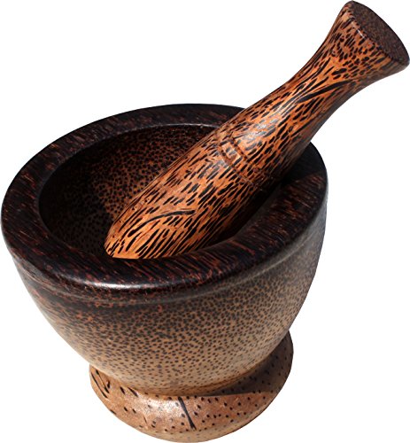 RaanPahMuang Palmwood Mortar & Pestle Home Spice Grounder Thai Craftsmanship, Mortar bowl diameter 4inch (10.5cm)