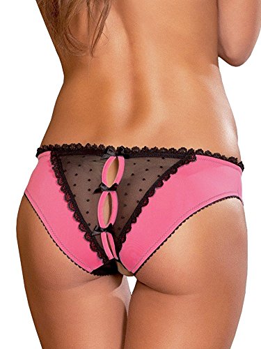 -. Feature : 90% Polyster,10% Spandex / Imported / Crotchless Frills Panty - Lace trim,rose black contrast color,open crotch,open back,bowknot / Small : Waist 23-24" / Medium : Waist 25-26" / Large : Waist 27-28" / Hand wash.