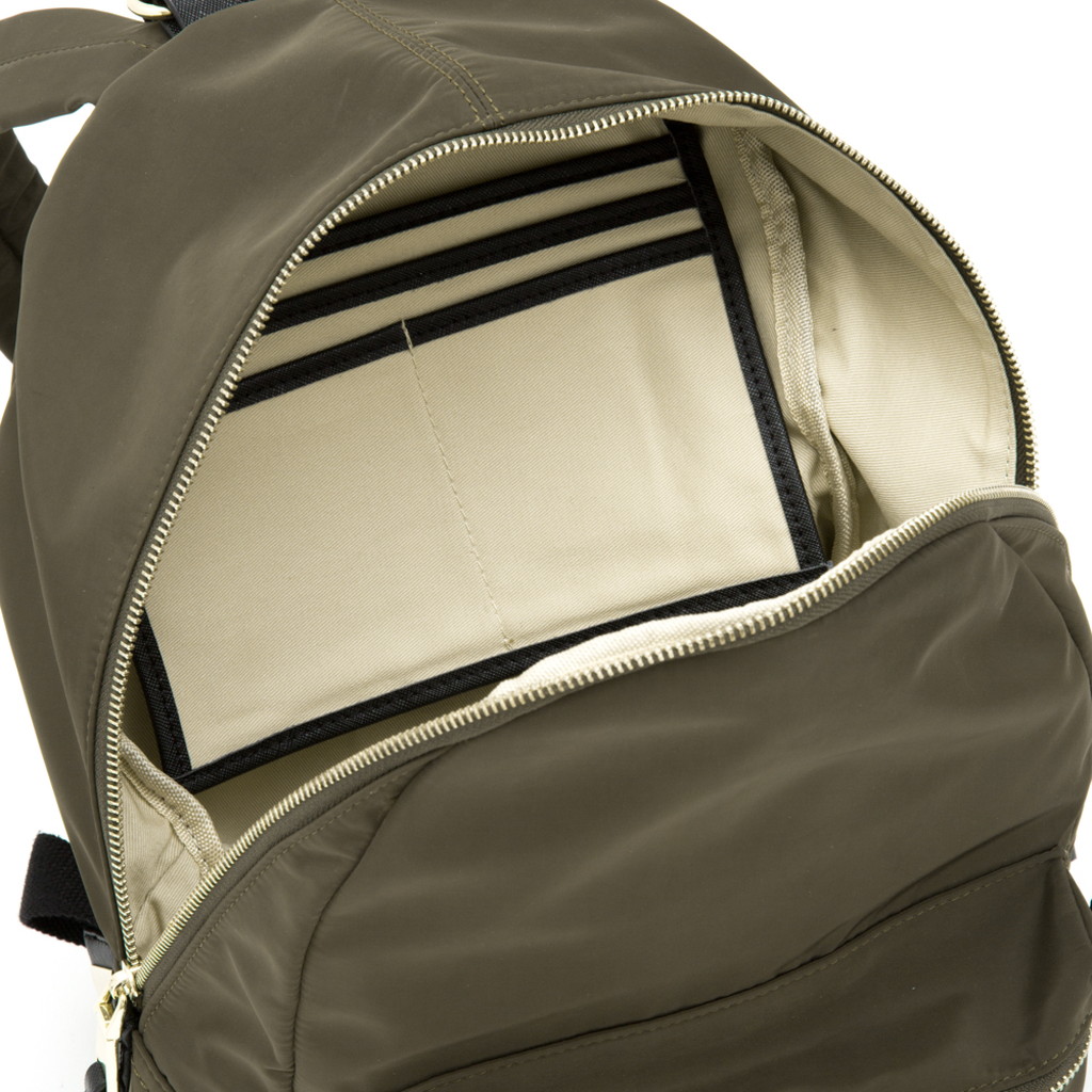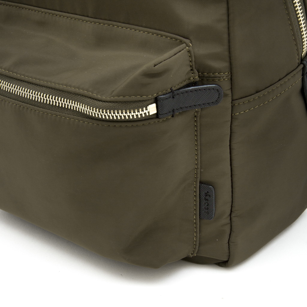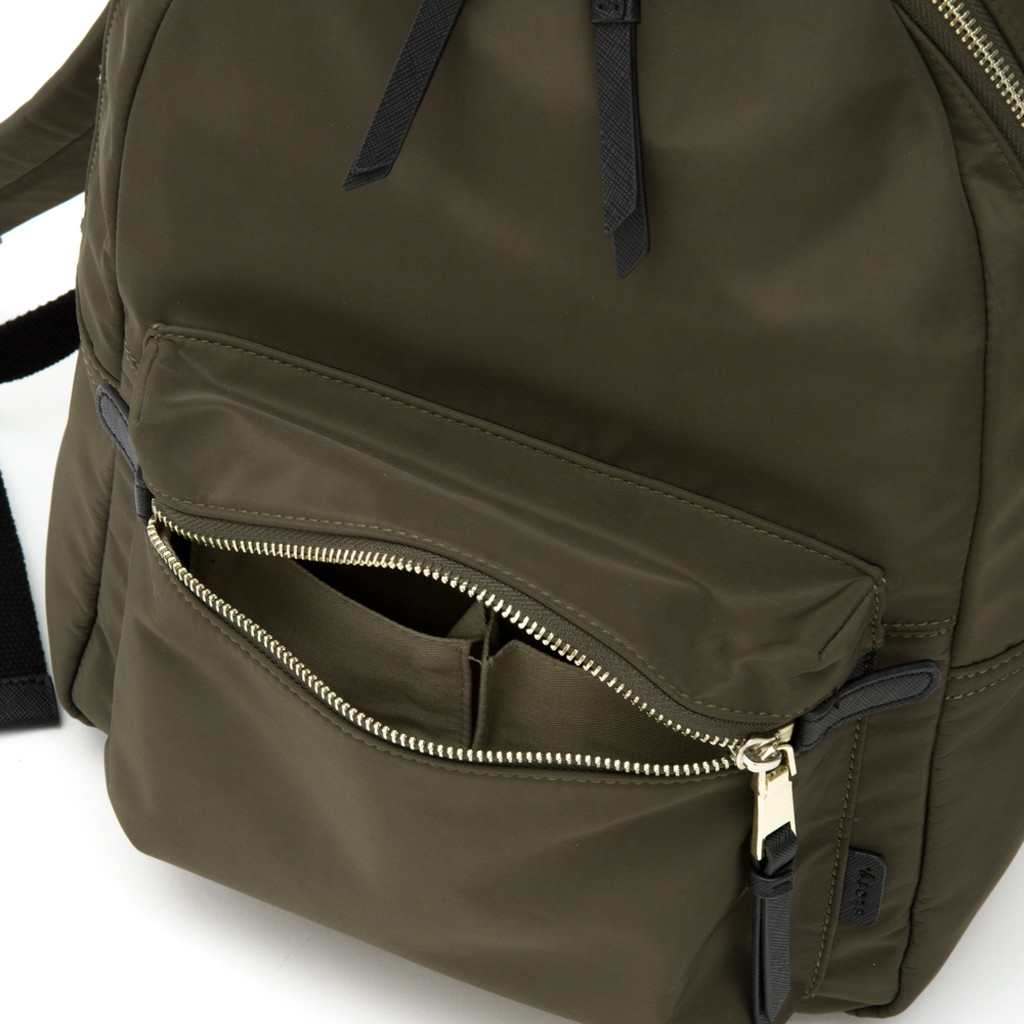 ブラッシュアップレザーリュックを高密度PEで作り直し、よりデイリーユースで持てるデザインにしました。大人カジュアルを意識し、ハンドル部分はサフィアーノレザーと金具使いに変更。仄かな光沢感と絶妙なカラーリングなど、高密度PEの特徴を活かしたリュックに仕上げています。