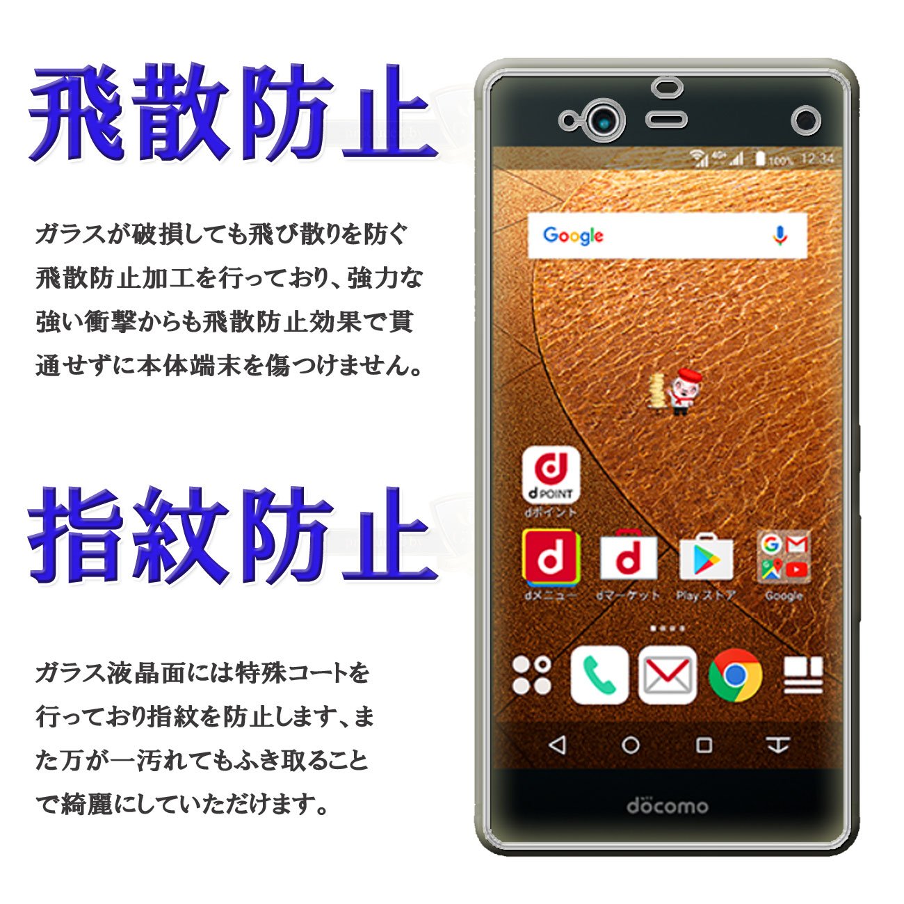 Glass film cracks even if it receives a strong external shock, but it prevents scattering with powerful scattering prevention effect, it does not penetrate, it receives the shock entirely and protects the terminal body firmly.