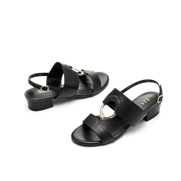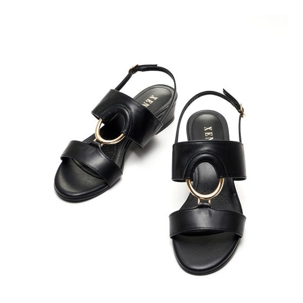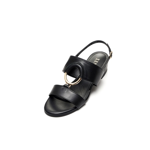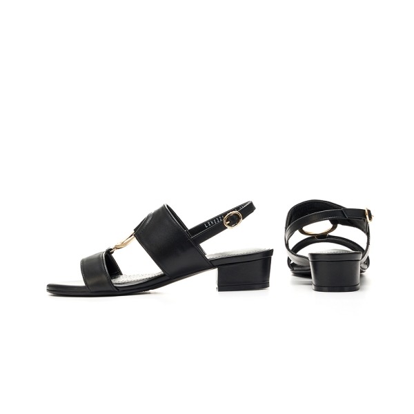 ◆ 소 재 : 소가죽 ◆ 굽 : 3cm ◆ S I Z E : 225 ~ 250 ◆ POINT : 원형 금속장식의 미드힐 샌들 투밴드 패턴을 연결해주는 골드 원형장식이 포인트. 낮은 승수의 디자인으로 애브리데이 착용할 아이템.