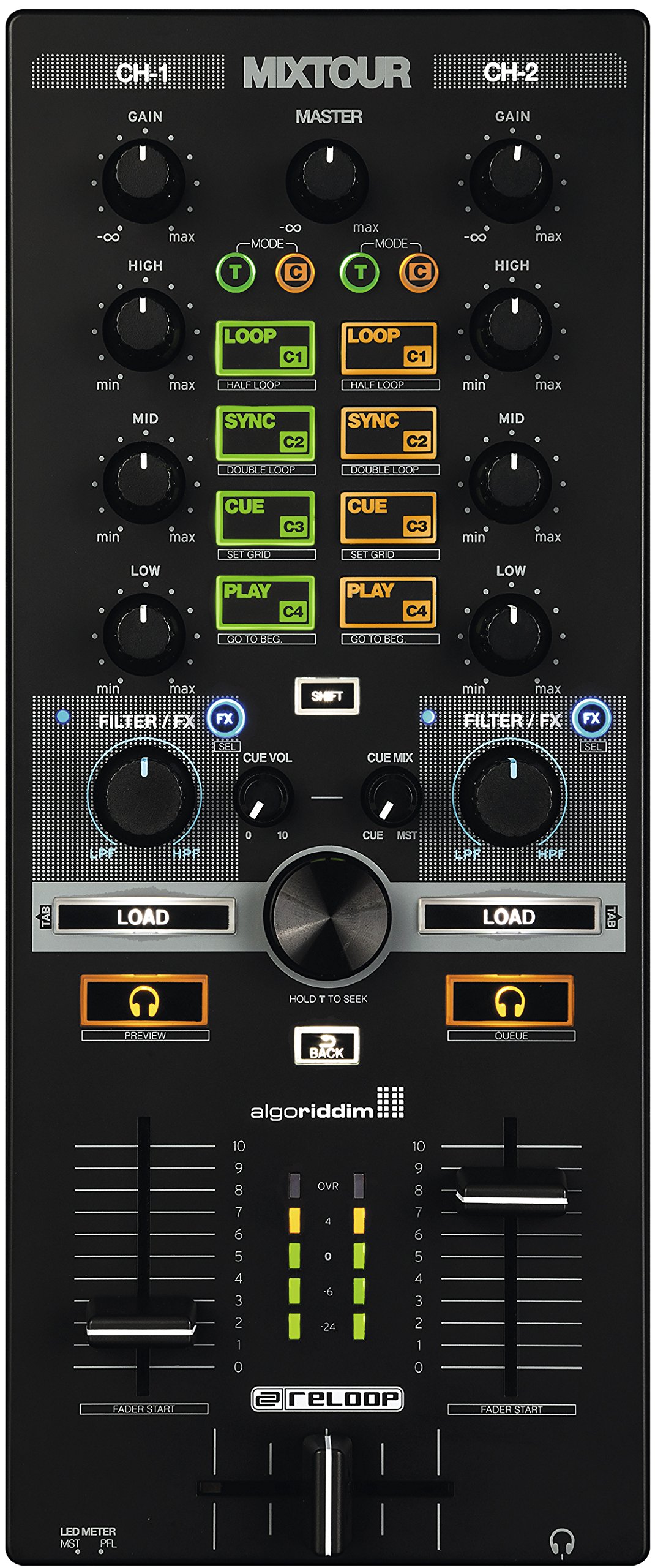 ● Developed exclusively for djay 2 made by algoriddim ● Assigned to other DJ software ● MIDI Learn installed ● Gain and 3 band EQ on each channel ● 3.5mm headphone jack ● Lightweight and slim casing ● For each channel