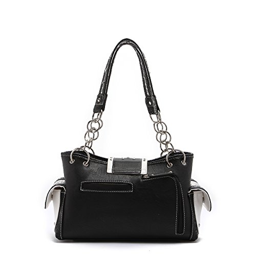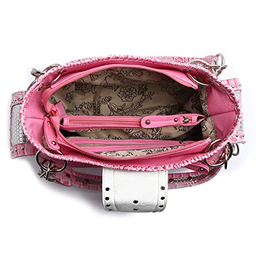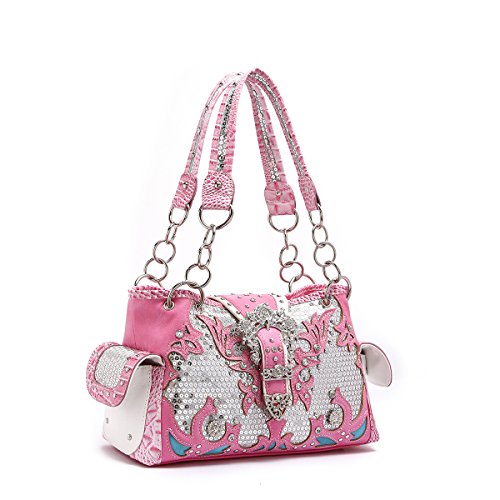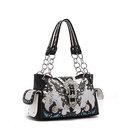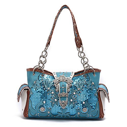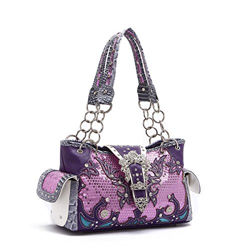 -. Title : Western Handbag - Shiny Sequin Butterfly with Silver Buckle Concealed Carry Shoulder Bag