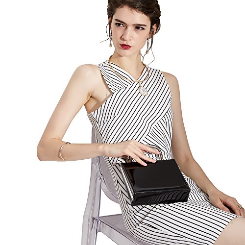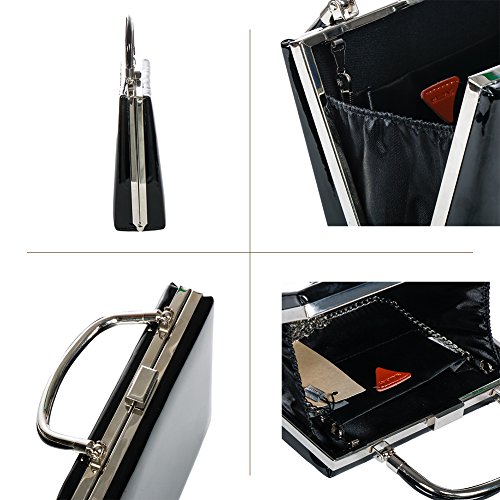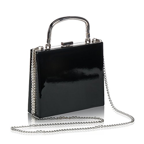 -. Feature : evening bag / party clutch for women, with top round handle for carrying it satchel style. / Clasp closure,made from high quality PU leather with frosted glitters and silver-tone chain strap. / Dimension: 7 in (L) X 2.3 in (W) X 6 in (H) . Handle Drop: 2.4 in. With 22" shoulder drop / Fabric lining.Interior wall pocket. Easily fit a cell phone, wallet, compact mirror, lip gloss, and a pack of gum. / Occasion: Great for wedding, party, prom,and etc. Just get this bag to have a wonderful night.