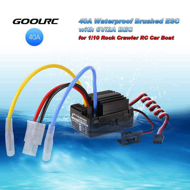 GoolRC 40A brushed ESC with 6V/2A BEC is designed for 1/10 RC rock crawler RC boat. Water-proof and dust-proof for all weather races, and it with multiple protections makes a long service life.