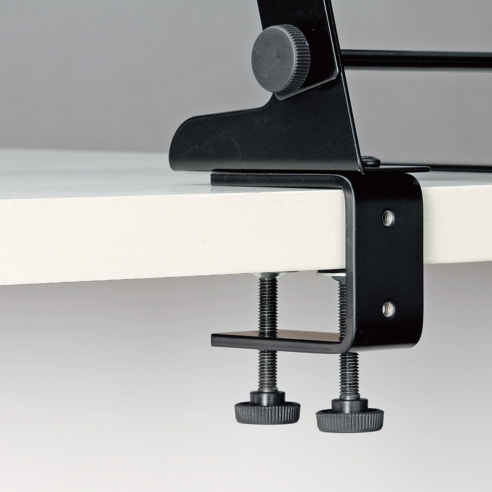 It is possible to fix it to a table up to 50 mm in thickness by using attached attachment as well as on desktop.