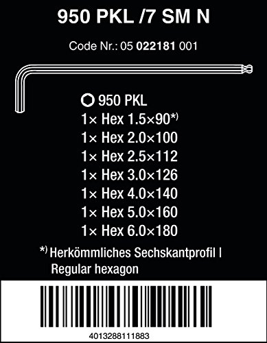Wera Stainless 3950 PKL/9 Ball-point Metric Hex-Plus Ergonomic L-Key Set with Two-Component Storage Clip, 9-Piece