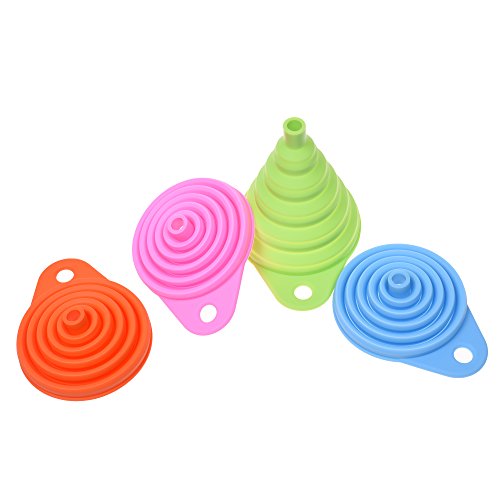 COSMOS Pack of 4 Assorted Colors Silicone Collapsible Funnel, Folding Funnel for Liquid Transfer