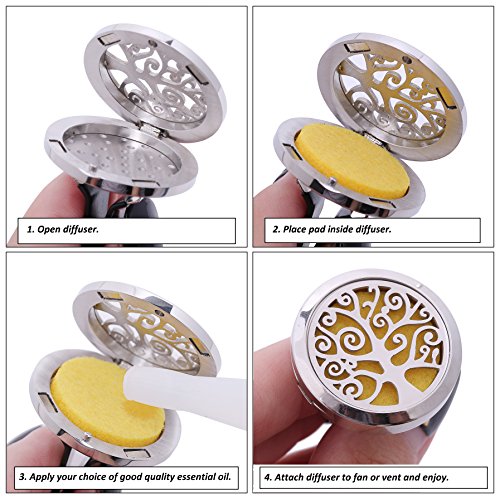Use this Essential oil Diffuser with your favorite scented oil on a pad and clip to any fan or vent to release aroma.