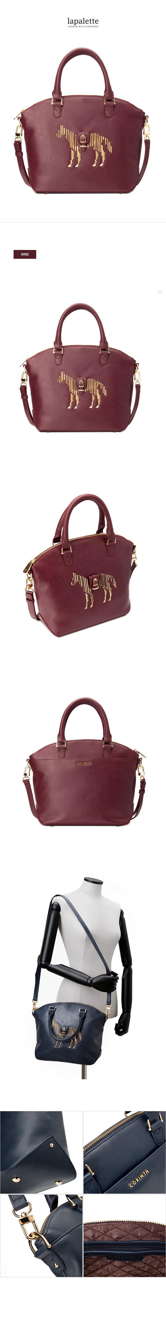 | 디테일 | 고급스러운 바장식이 포인트인 RACHEL LINE 의 새로운 디자인 개발 몰드로 자체 제작한 골드 바 장식을 나열하여 홀스 모티브 완성 같은 컬러의 서로 다른 소재를 매치하여 심플하면서 모던한 스타일로 디자인 탑지퍼가 라운드 형으로 제작되어 수납시 편이성을 더하고 유니크한 입체 패턴을 완성 토트와 크로스 2- way 활용가능하고 포멀한 정장룩에서 캐주얼까지 다양한 스타일에 매칭가능한 데일리백 |
