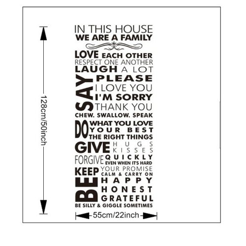 - Title : MZY LLC (TM) In This House We Are A Family Removable Wall Stickers Home Decals Decor Quote Art Vinyl Bedroom
