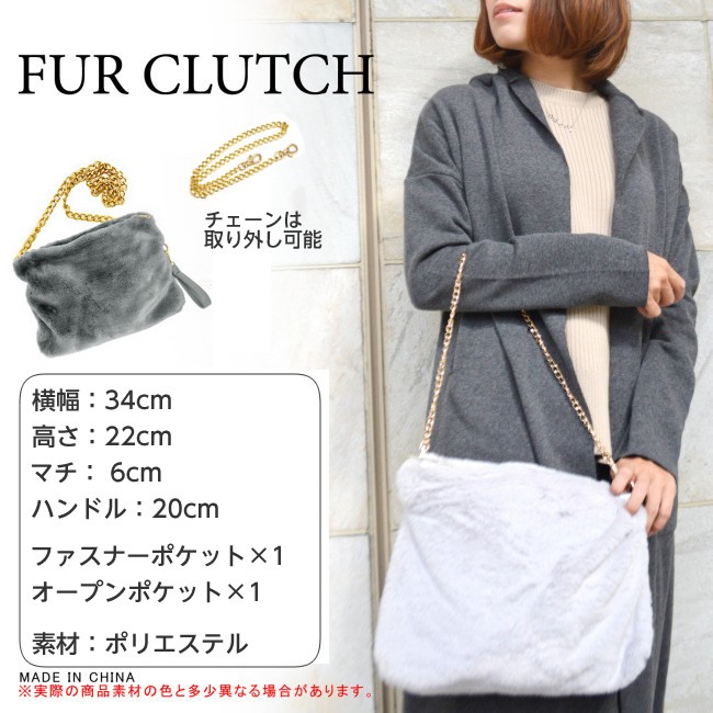 ふわふわで肌触りのよいフェイクファー2wayで使えるクラッチバッグ☆