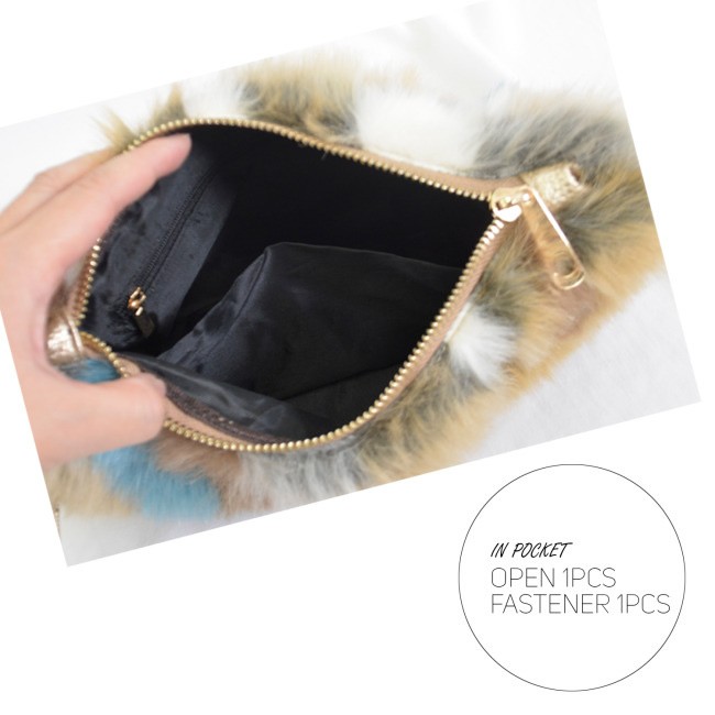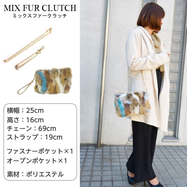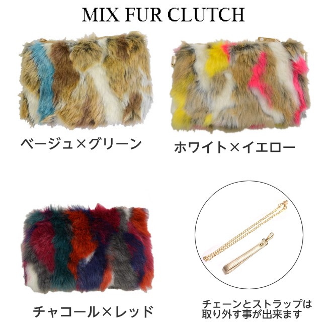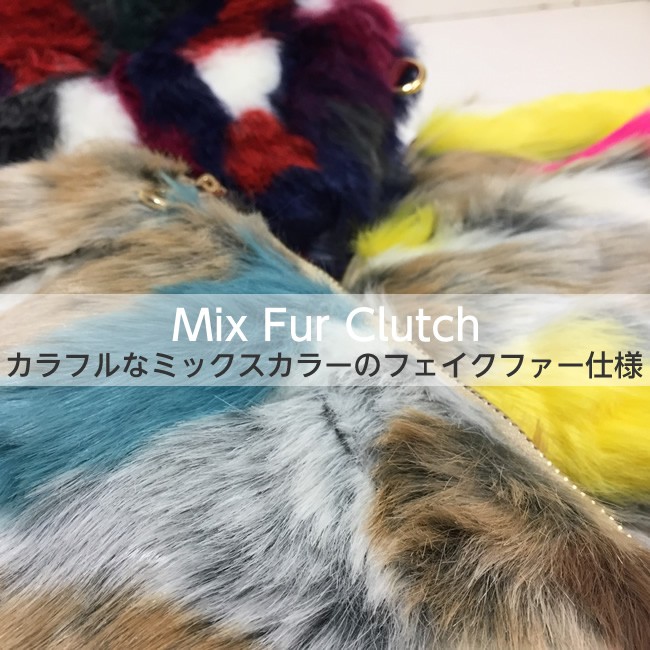 カラフルなミックスカラーのフェイクファー仕様のクラッチバッグ