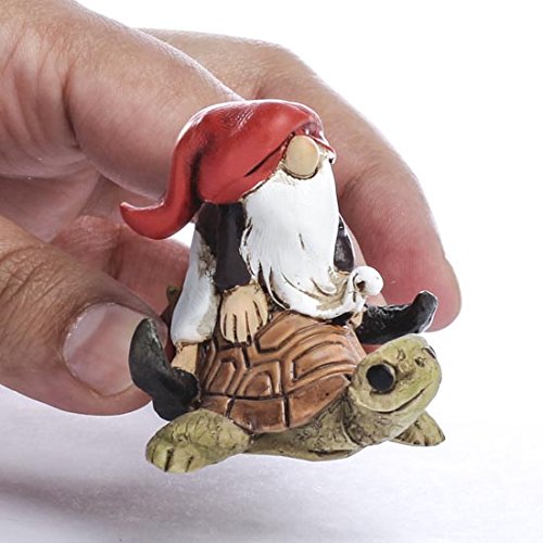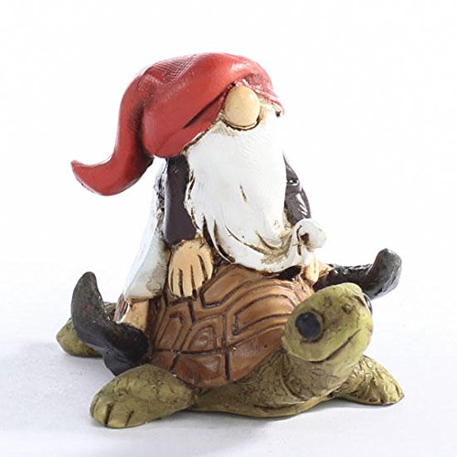 -. Binding : Toy -. EAN : 0848192056678 -. Feature : Hand Crafted Resin Gnome Riding Whimsical Turtle for Fairy Gardens, Terrariums, and Crafting / Measures: 2" High and 2.5" wide / Makes an adorable baby shower gift or favor / This figurine is made from cold cast resin with amazing hand painted whimsical details. -. IsAdultProduct : 0 -. Label : Unknown -. Manufacturer : Unknown -. PackageQuantity : 1 -. ProductGroup : Toy -. ProductTypeName : TOYS_AND_GAMES -. Publisher : Unknown -. Studio : Unknown -. Title : Hand Crafted Resin Gnome Riding Whimsical Turtle for Fairy Gardens, Terrariums, and Crafting -. UPC : 848192056678