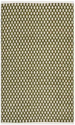 The Boston Collection by Safavieh is crafted of 100-percent pure cotton for luxurious softness underfoot and exceptional clarity of color. Perfect for casual interiors from coastal, to country, to sophisticated suburban, this lush hand-woven rug features geometric motifs in olive with creamy white accents. Inspired by Moroccan designs, this rug is visually immaculate with a nautical vibe that will seamlessly integrate into any household.