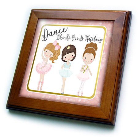 3D Rose Dance Like No One Is Watching with Cute Ballerina Girls Framed Tile, 8" x 8"