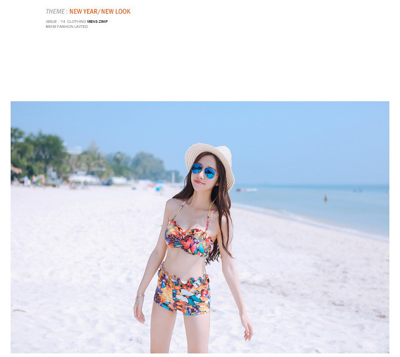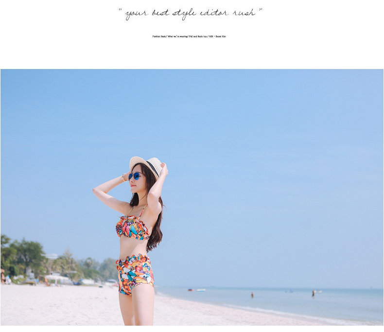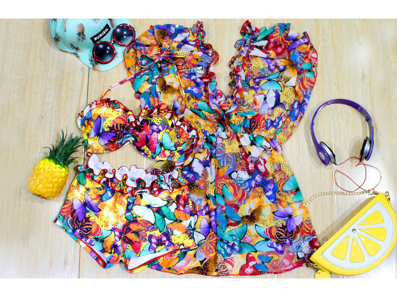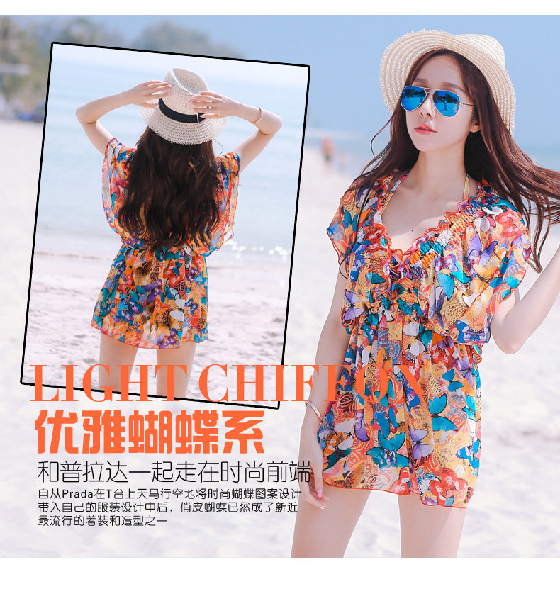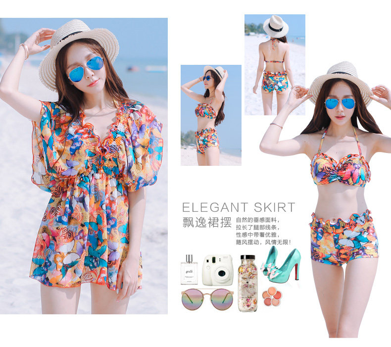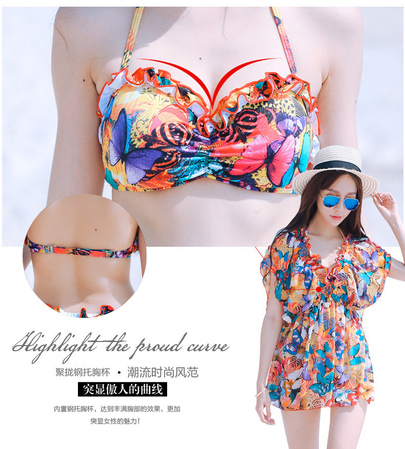 比基尼三件套泳衣女bikini钢托聚拢显瘦温泉游泳衣罩衫泳装