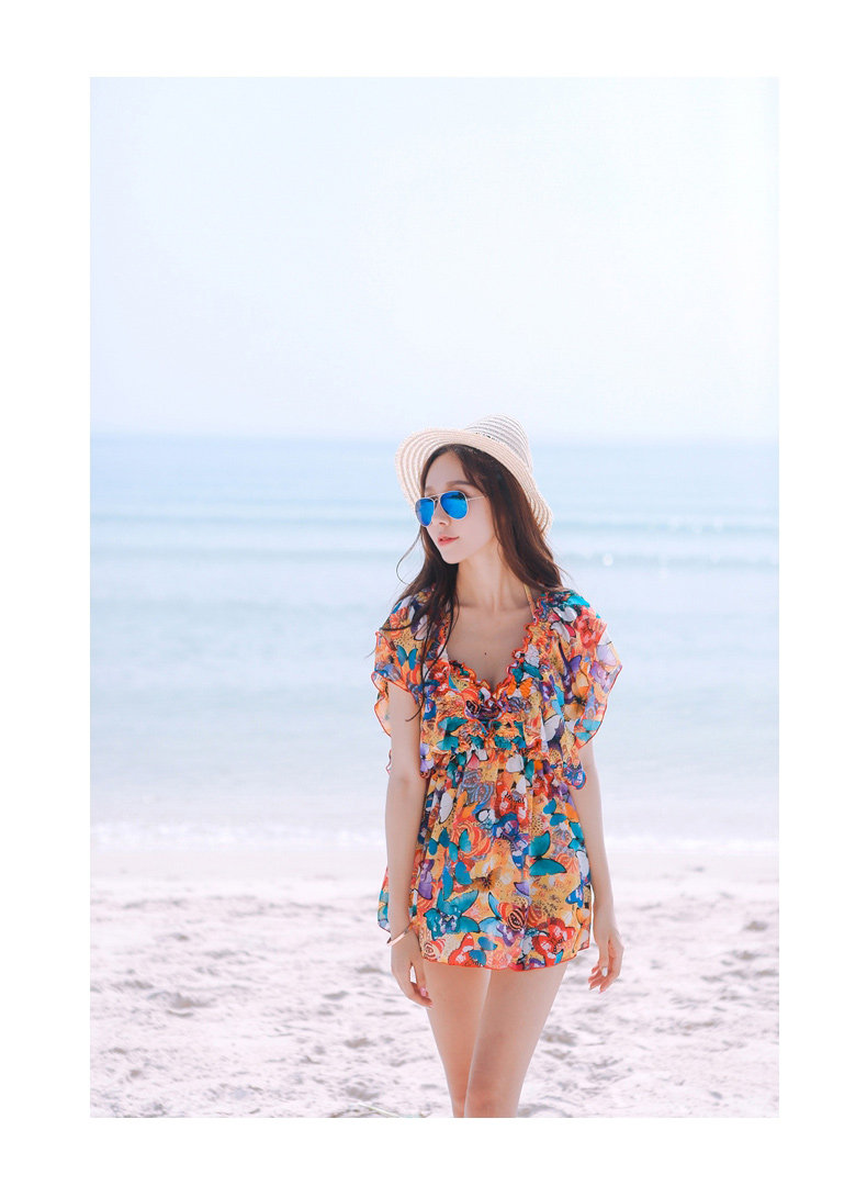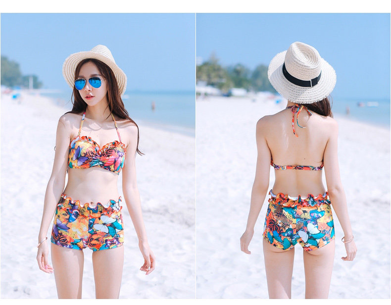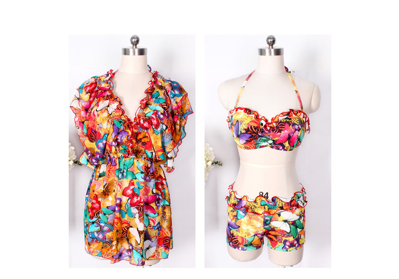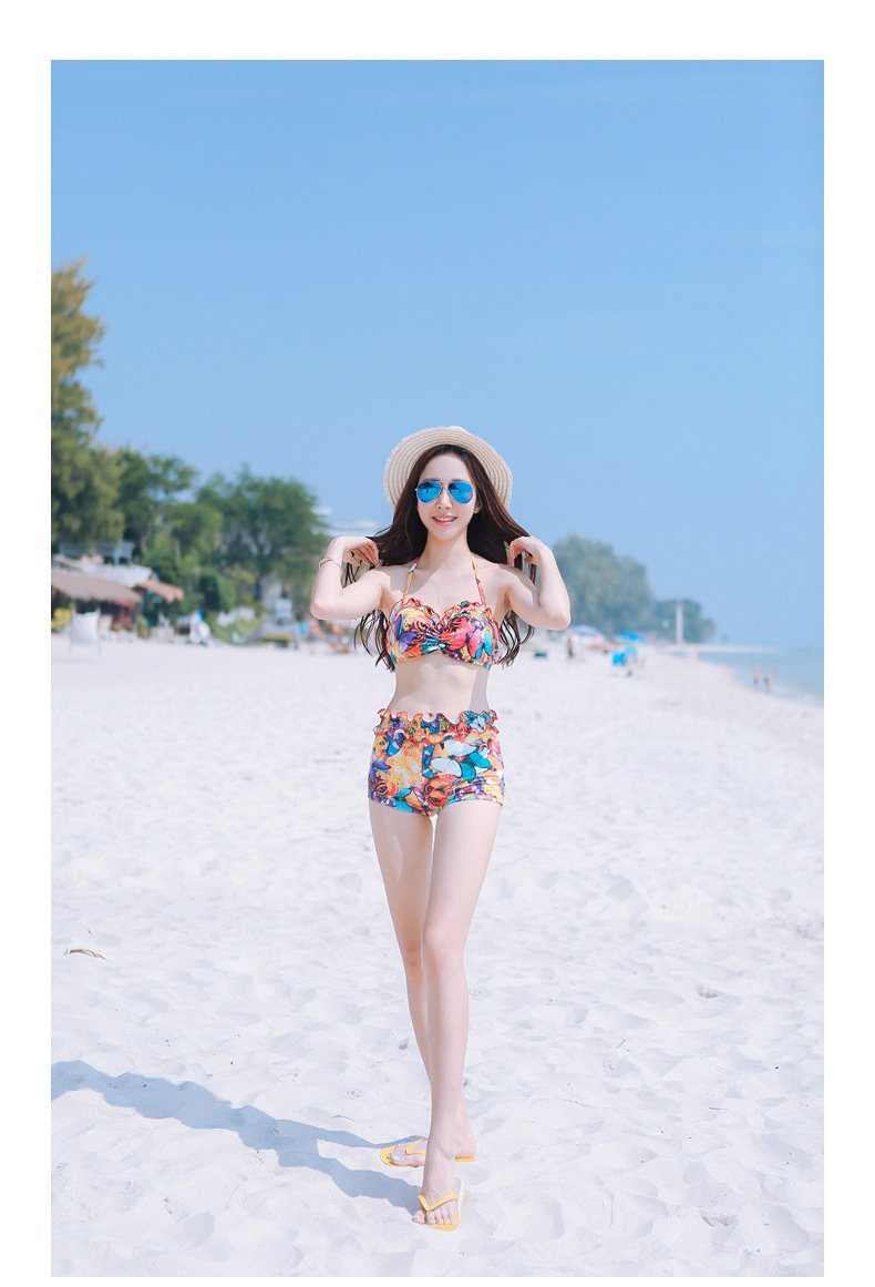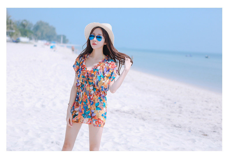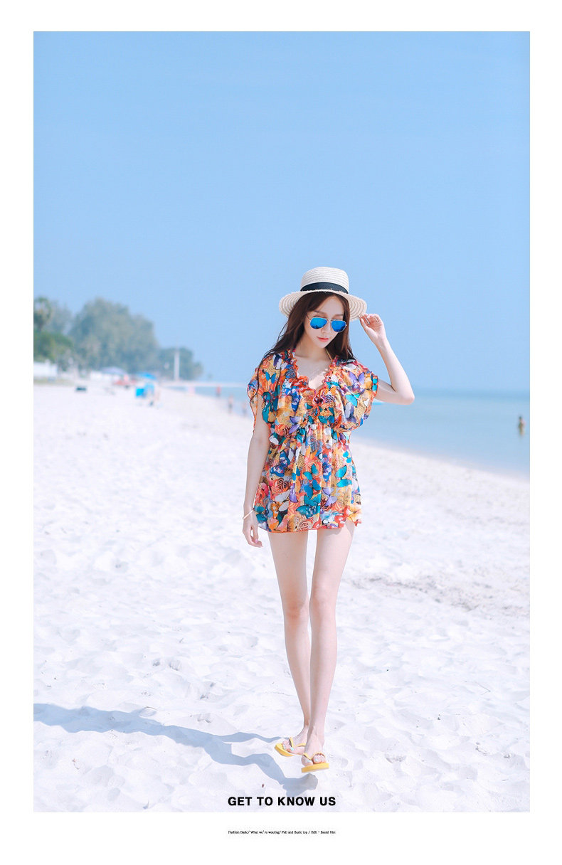 比基尼三件套泳衣女bikini钢托聚拢显瘦温泉游泳衣罩衫泳装