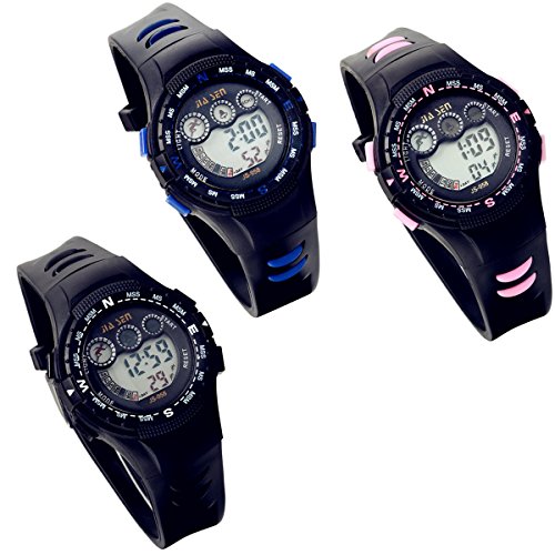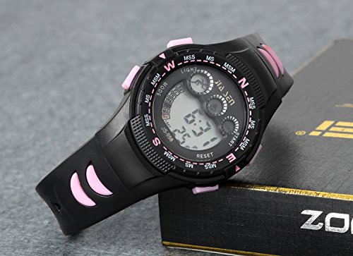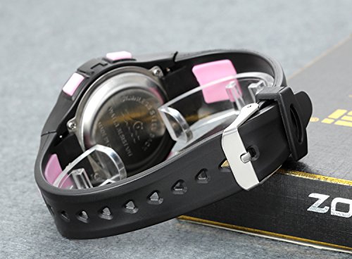 -. Feature : 100% brand new, one watch in total, come with one velvet gift bag / Length:8.9"(22.5cm), Case Diameter:1.2"(3.1cm), Thickness:0.5"(1.3cm), Band Width:0.6"(1.6cm) / Default Color: black bezel + pink button + black band, you can write email to change color after payment. / Multifunction Watch: Auto Date, Alarm, Water Resistant, LED display,Shock Resistant, Stop Watch,Back Light / Living waterproof design (Not suitable for swimming, diving, shower, etc.)