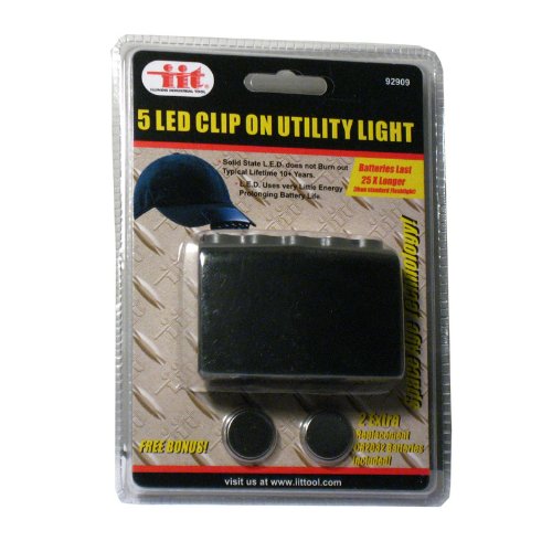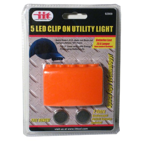 Studio : JMK IIT Publisher : JMK IIT Binding : Misc. Product Description New 5 LED Clip On Utility Light Features: * 5 ultra bright LED's give extended viewing range * Includes 1 red LED * Easy thumb switch operation * Total hands-free operation * Lightweight, compact and low profile * Uses 2 lithium cell CR2032 3V batteries (included) * Includes 2 Extra replacement batteries * Solid state LED does not burn out typical lifetime 10 years * LED uses very little energy prolonging battery life * Ideal for hunting, fishing, camping, mechanical work and much more! * Perfect as a gift! Material: plastic Available colors: black orange. If you want a specific color please let us know when making the payment. Otherwise we will select the color for you. Dimension: 3" L x 2" W x 0.625" H Sealed in original package. 0