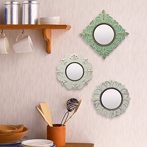 Stonebriar Ceramic Distressed Wall Mirrors, Worn Pale Ocean